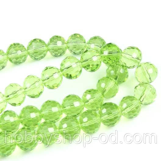 Бусини кришталеві куля 6 мм св. салатові (72 шт.) крейда. огранка
